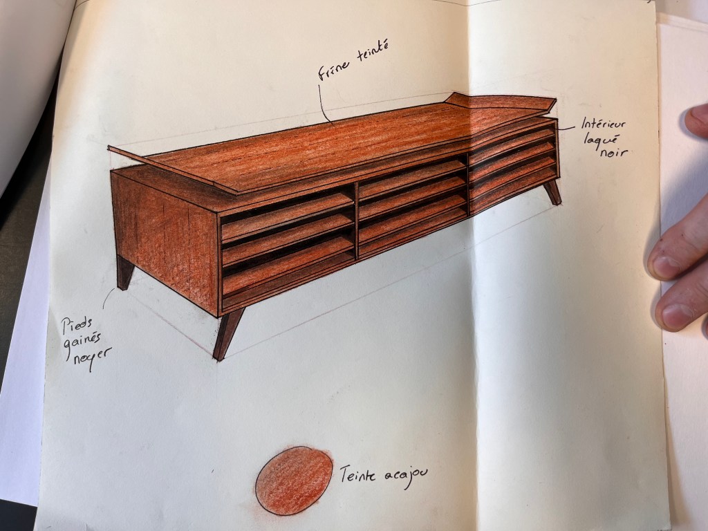 Un meuble, ça démarre par un dessin, qu’on rature sur un bout de papier, avant de prendre le temps de le mettre au propre sur un beau grain. Même s’il est aujourd’hui de rigueur de concevoir les objets sur ordinateur, chez Raw, on reste persuadé.e que rien ne remplacera le crayon de bois et le papier.